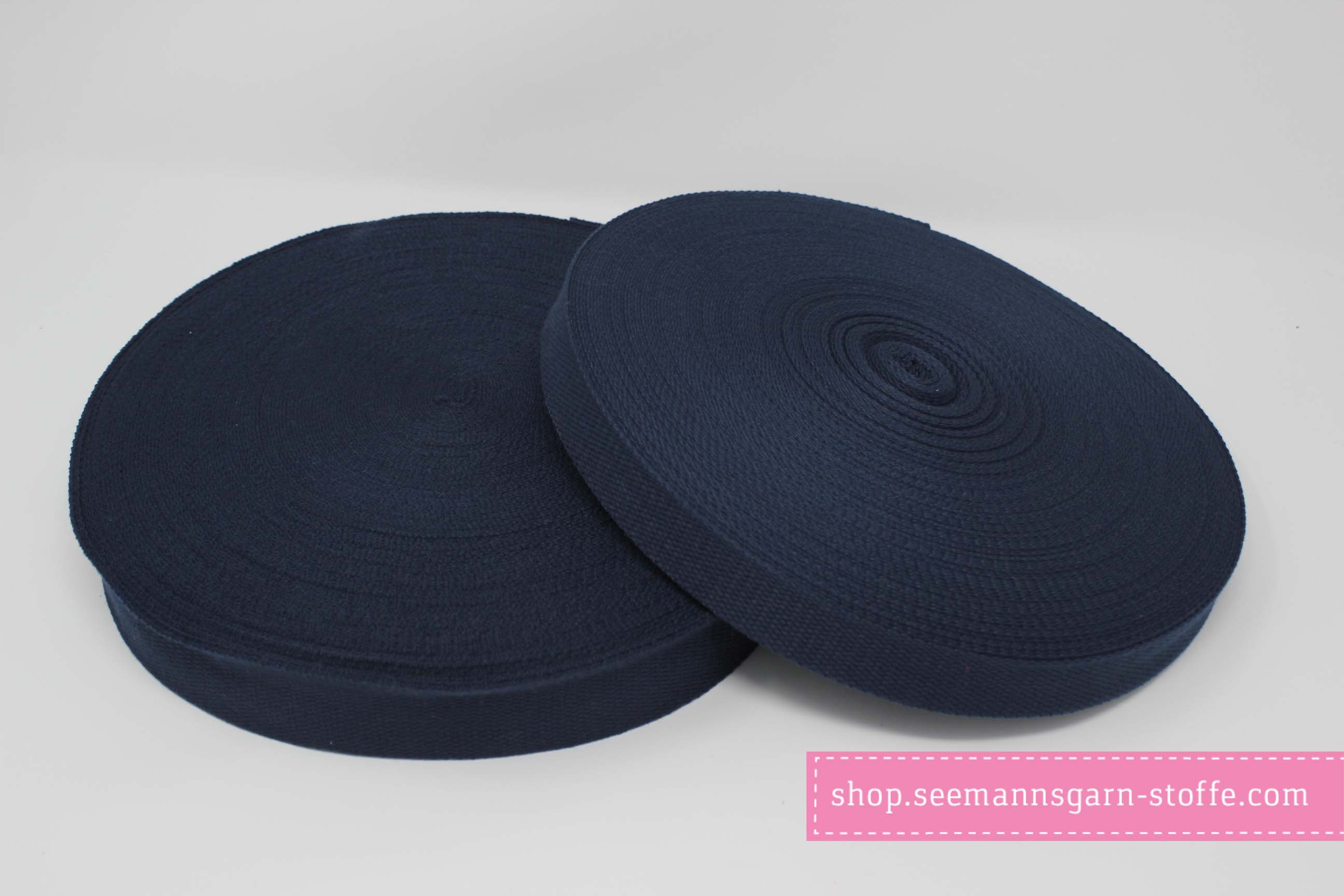 Stabiles Gurtband aus Baumwolle in schwarz, erhältlich in 25 mm und 38 mm Breite.