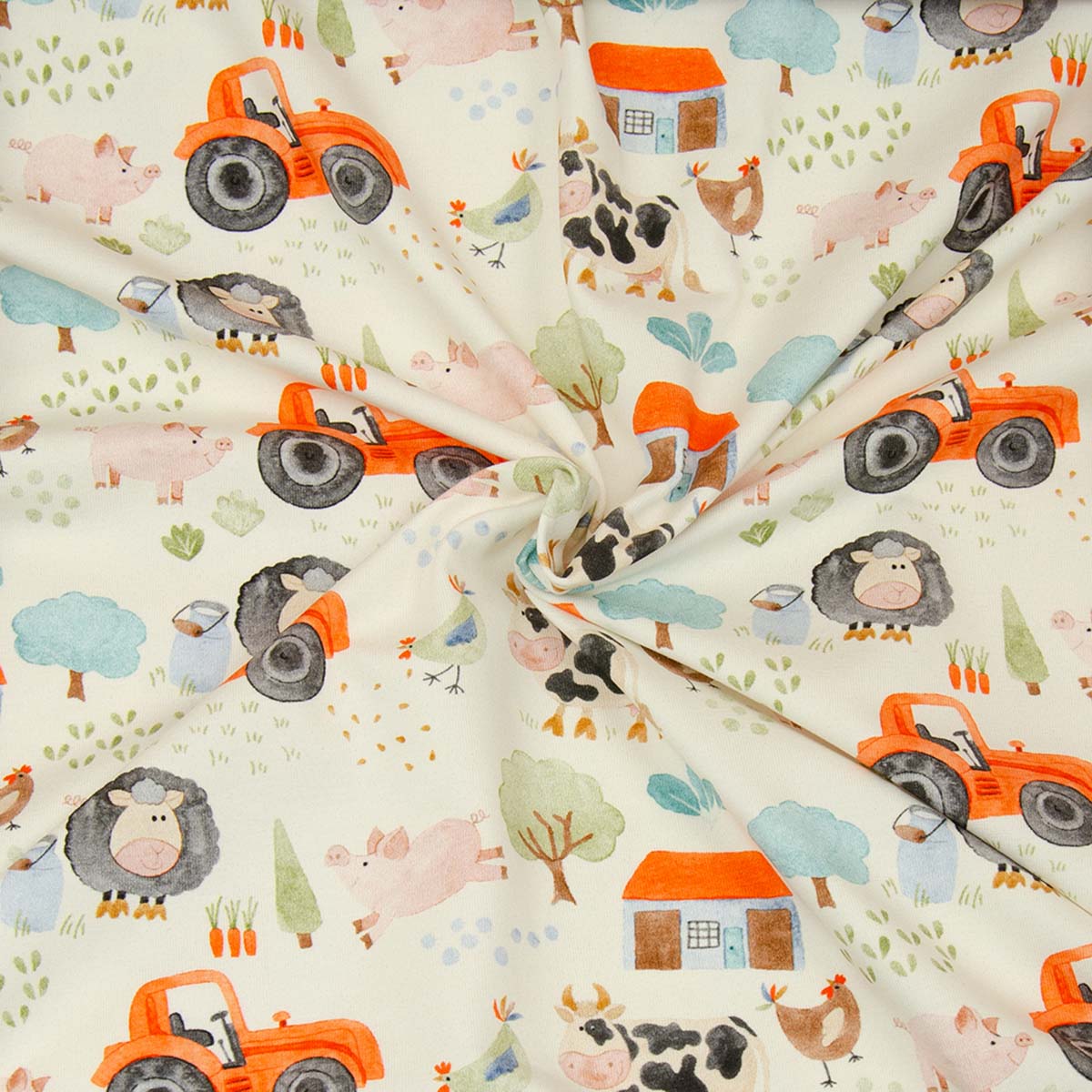 Baumwolljersey "Littel Farm" auf crémefarbenen Hintergrund von Hilco