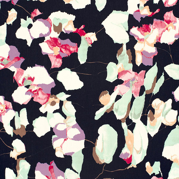 Fließende Kunst: Borken Crepe Stoff „Abstrakte Blumen“ in Marine – Dein Stoff für modische Statements
