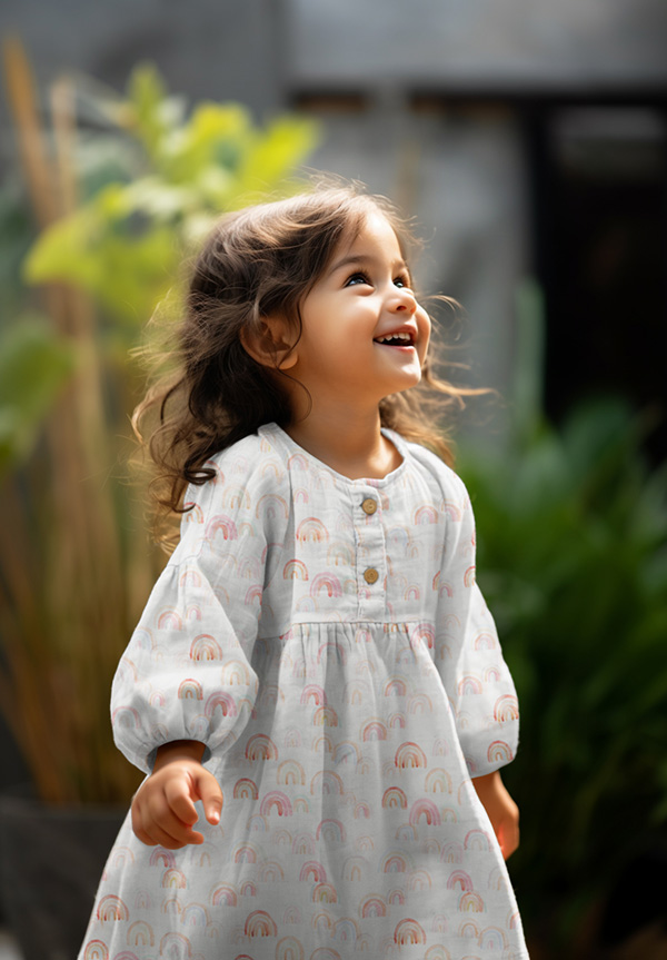 Hol Dir ein Stück Himmel auf Deinen Nähtisch! Dieser wunderschöne Musselin von Poppy Fabrics verzaubert durch seinen sanften Digitaldruck mit vielen kleinen Regenbögen in warmen Pastelltönen. Auf dem strahlend weißen Hintergrund kommen die Farben besonders schön zur Geltung und machen jedes Deiner Nähprojekte zu einem echten Unikat.