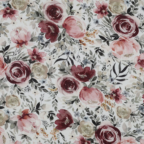 Lass Deinen Kleiderschrank aufblühen! Dieser traumhafte Musselin von Poppy Fabrics besticht durch seinen detailreichen Digitaldruck mit üppigen Rosen und Blüten in edlen Beeren- und Erdtönen. Das Zusammenspiel aus dem strahlend weißen Hintergrund und den warmen Vintage-Farben verleiht Deinen Nähprojekten eine zeitlose Eleganz.