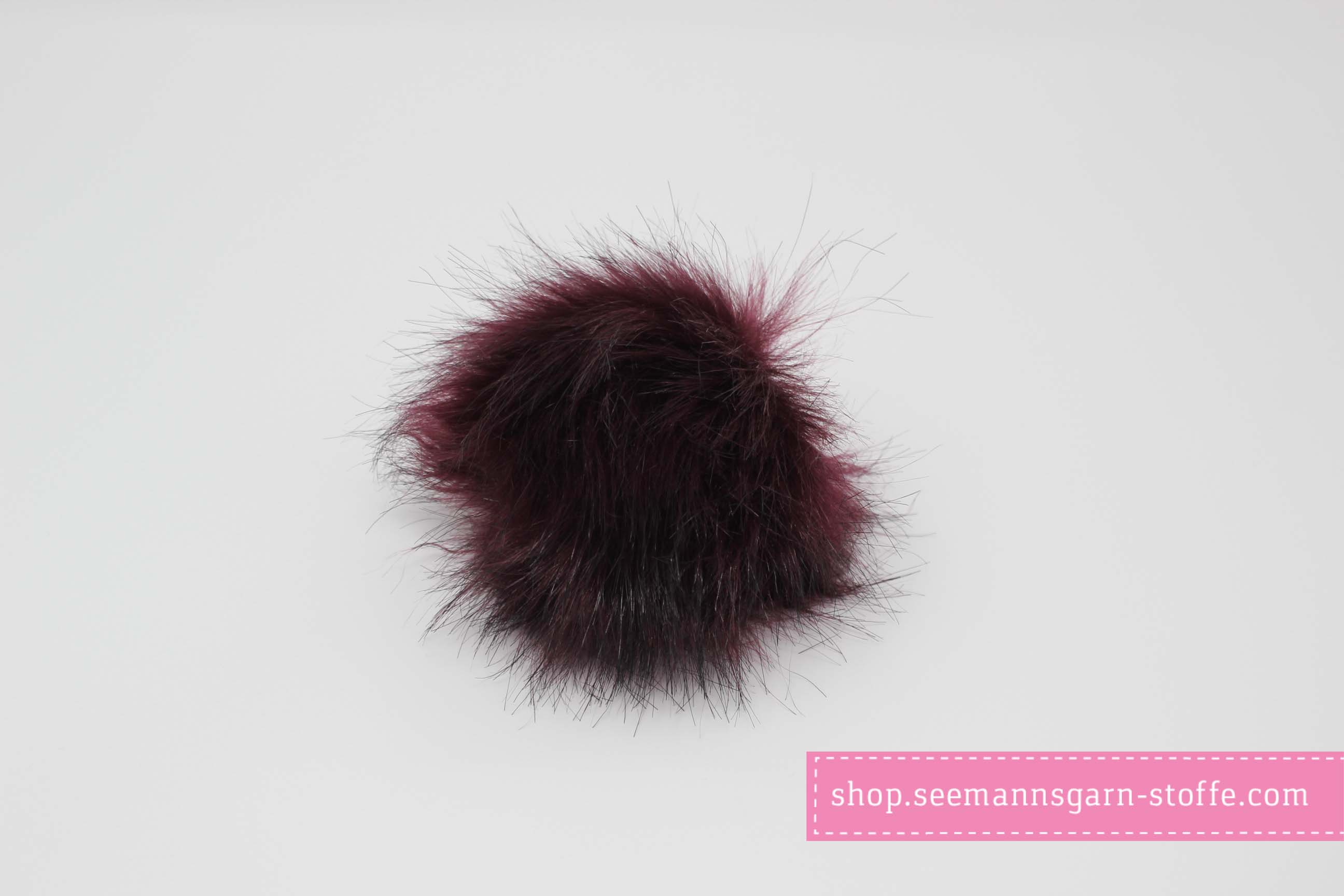 Weicher Bommelquast aus Kunstpelz, 12 mm in weinrot mit Druckknopf inkl. Gegenstück.