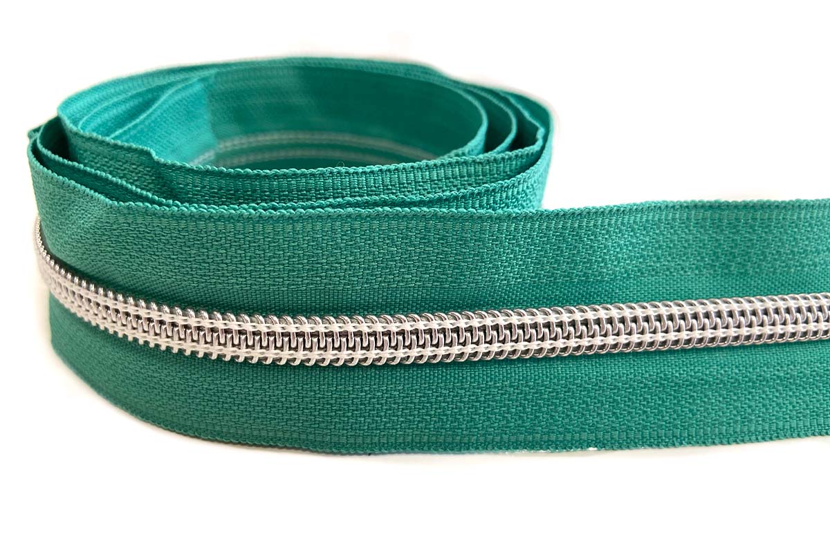 Reißverschluss in türkis/silber mit 3 Zippern, 100 cm.