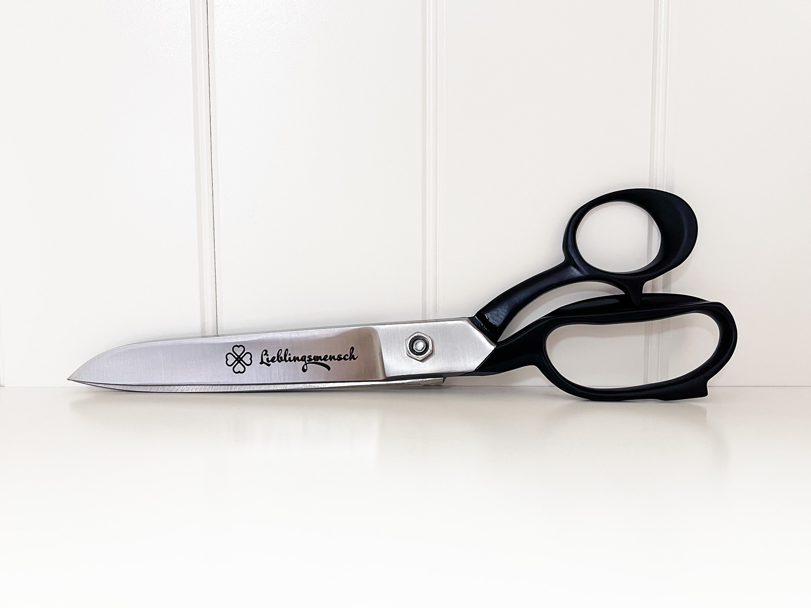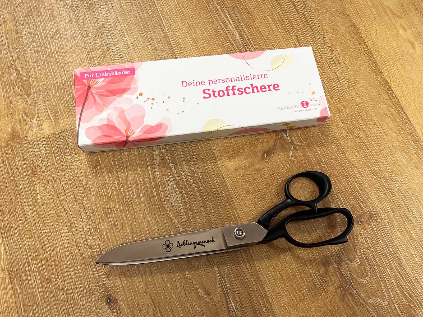 Personalisierte Linkshänder-Stoffschere 8"/20cm in "schwarz" mit Geschenkverpackung