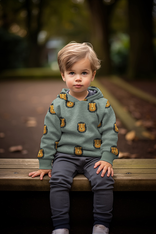 Lass die Löwen los auf Deinem Nähtisch! Dieser zuckersüße Sweatstoff von Poppy Fabrics ist der perfekte Begleiter für gemütliche Kinderoutfits. Die niedlichen Löwengesichter auf dem zeitlosen Ecru-Melange Hintergrund verleihen Deinen Nähprojekten einen verspielten und dennoch modernen Look.